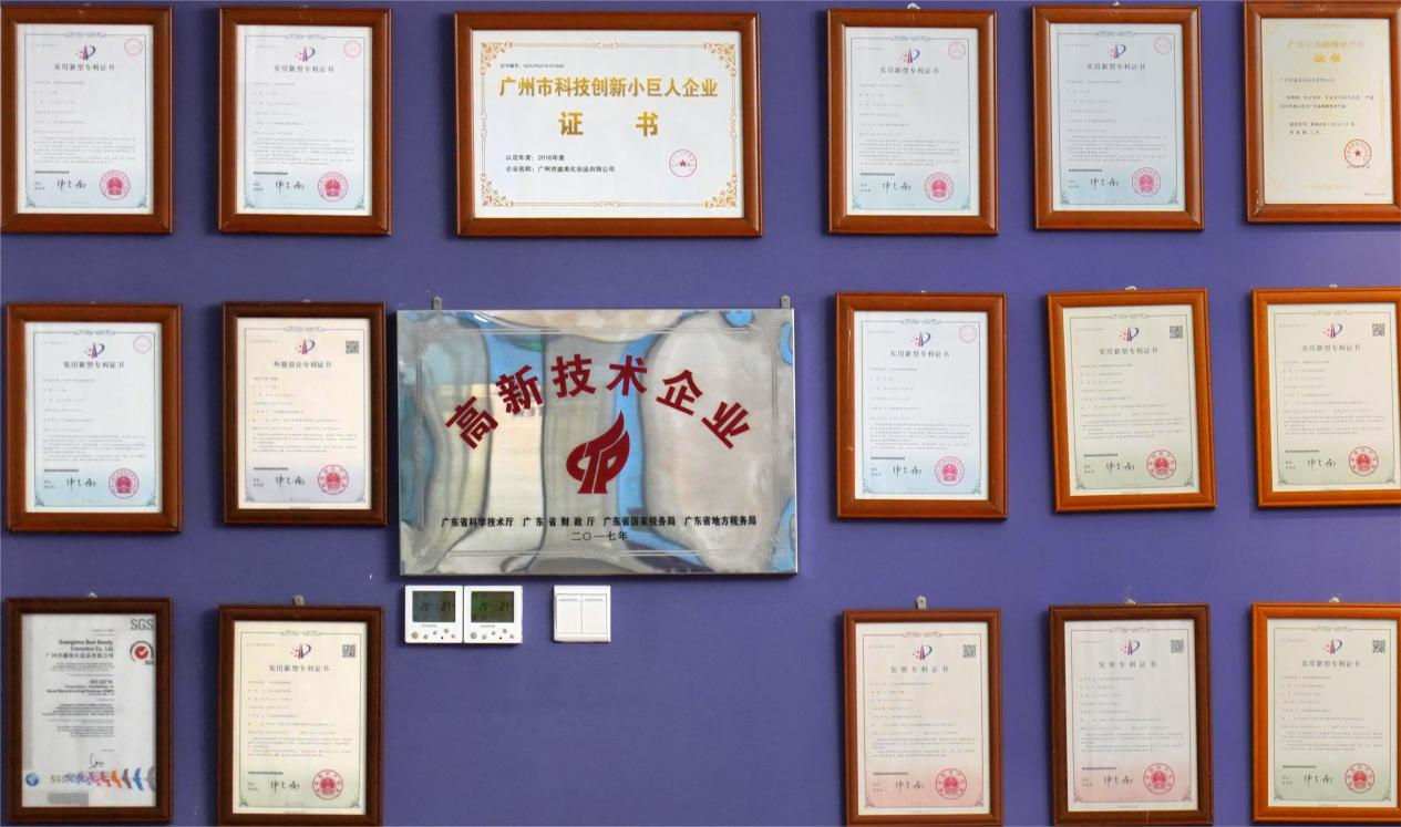 在行业内,广州盛美一直以研发创新作为发展方向。2015年全国化妆品过敏率控制评比中更是荣获第一。公司获得了高新企业、科技创新小巨人和新型研发机构等国家认证,并荣获6项实用新型专利。