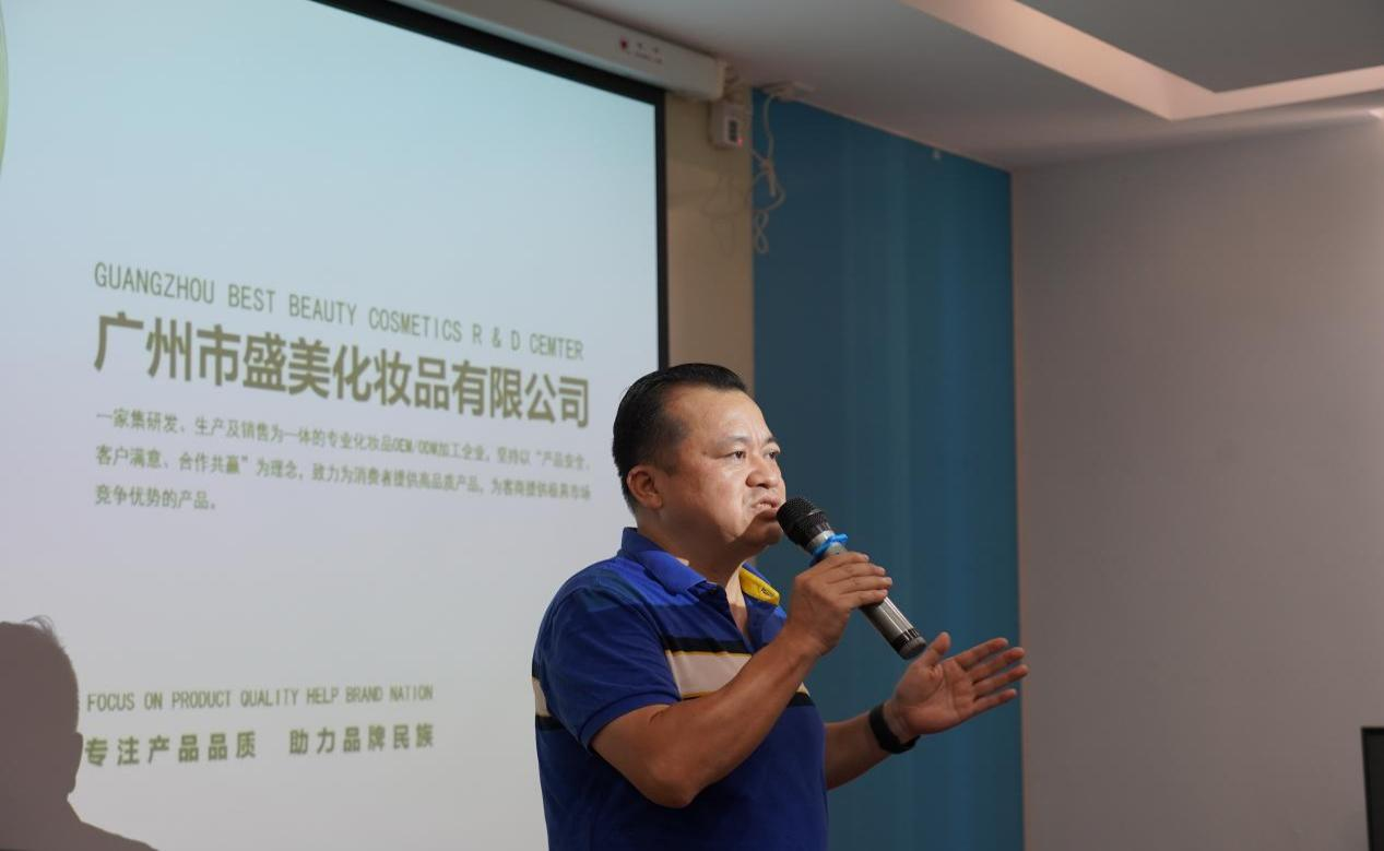 活动“首秀”,是广州盛美化妆品有限公司董事长王斌宣讲。