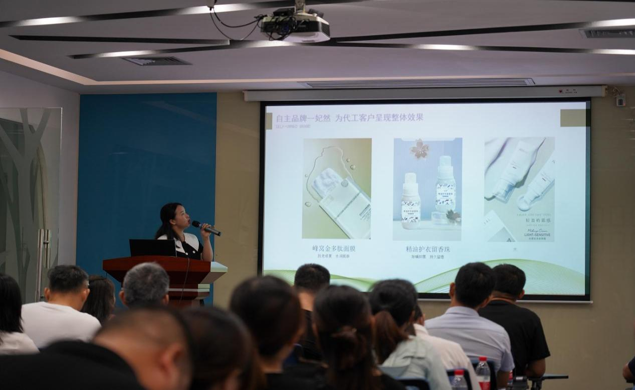 随后,广州盛美业务经理王朵朵详细介绍了广州盛美的整体概况。据介绍,成立于2005年的盛美,专注耕耘化妆品OEM/ODM代工和研发已经十八年,是一家集化妆品研究、开发、生产、服务为一体的综合性大型企业。盛美获得高新企业、科技创新小巨人和新型研发机构认证。