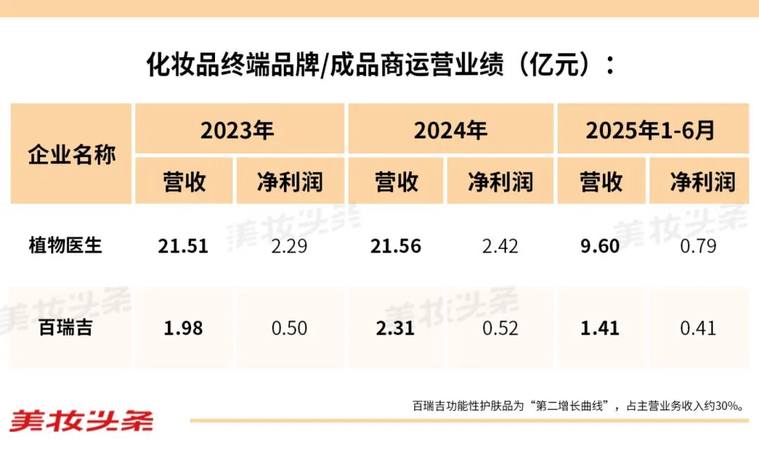 终端品牌/成品商(2家)植物医生(单品牌店模式)和已过会的百瑞吉(跨界,旗下功能性护肤品牌维缇芮生)。两者共同特点是拥有自有品牌并向C端销售,但其上市审核关注点也恰恰集中在‌盈利能力可持续性、品牌营销合规性及是否具备核心科技壁垒‌上。目前,百瑞吉的护肤品业务还处于亏损状态,尚未形成稳定盈利模式,而植物医生则被指存在“产品创新与研发持续性”的短板,这正是当前终端品牌IPO普遍面临的挑战。